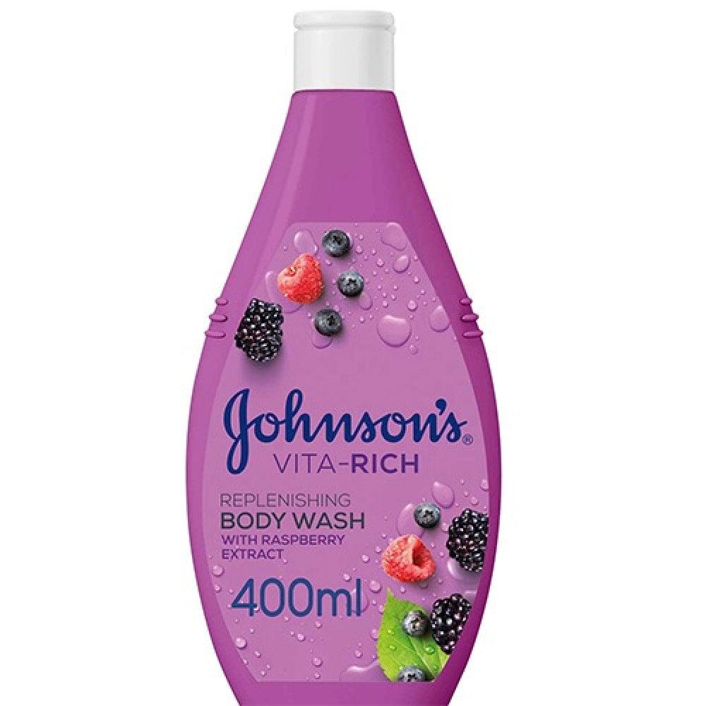 غني بخيرات خلاصة التوت البري وتوت العليق والجلسرين المرطب، يعمل الصابون السائل للاستحمام Vita-Rich نضارة من جونسون على ترطيب وتنعيم بشرتك الجافة بفعالية ويمنحها الراحة لمدة 24 ساعة.